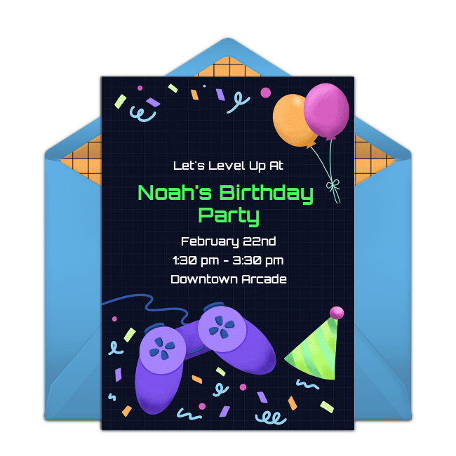 Video games, consoles, or even a video game tournament. Email or text these Game On or Level Up Birthday invitations in minutes. If your 13-year old is a Sonic the Hedgehog gamer, check out these Sonic Birthday Party Ideas for more inspiration.