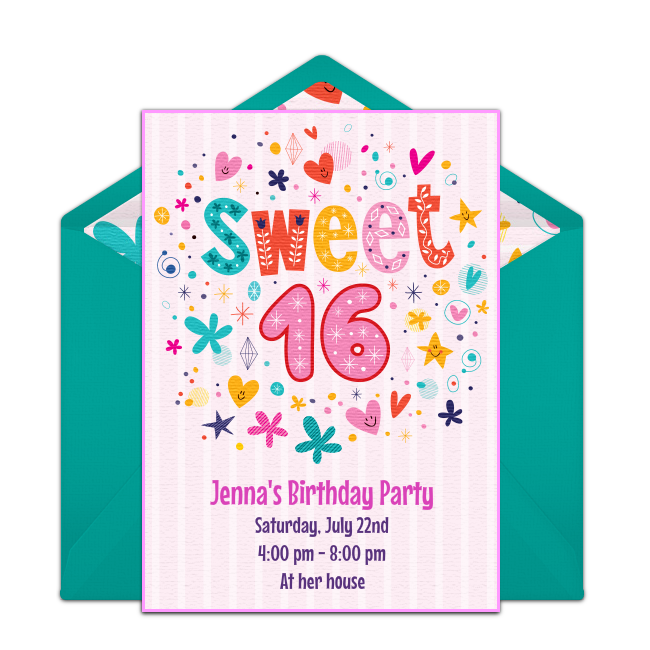 For additional 16th birthday ideas, seek inspiration from the activities that your teen likes to do as well as any hobbies or interests that they may have. Get started on your party planning by browsing through our collection of teen birthday party invitations.