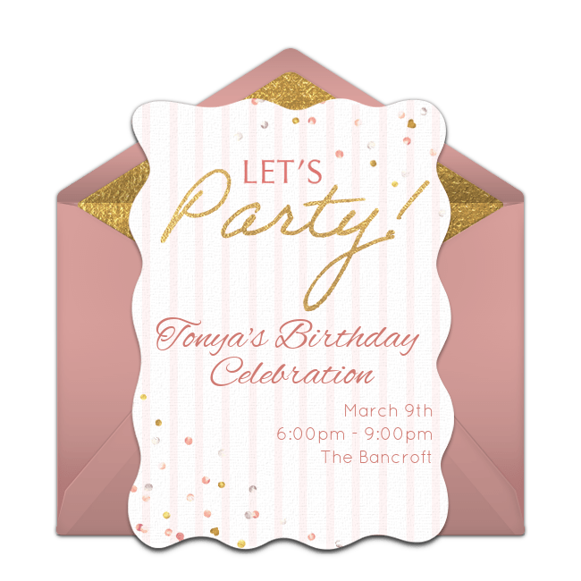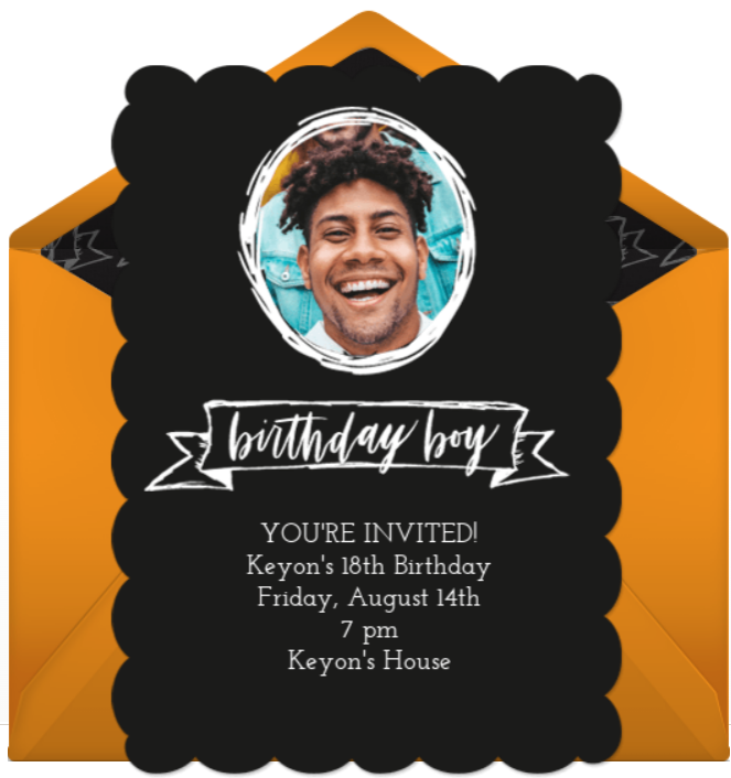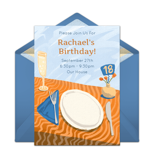 Hosting a themed party? Punchbowl offers free online invitations for the following themes: Sleepover, Game Night, Movies & TV, Sports, Music & Dance, Travel, and much more! Remember: You can also find ways to incorporate the theme into the 18th birthday invitation design through specific colors and detailed words or phrases.