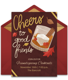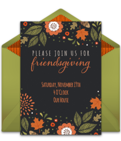 Before you even think about a menu, start your celebration off on the right foot with gorgeous Friendsgiving invitations you can customize and send from any digital device. Personalize your favorite Friendsgiving invitation, send by text or email, and gather RSVPs in minutes.