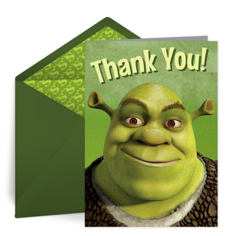 Here's a bonus party idea: after the celebration, send Shrek Thank You eCards to let guests know how much you appreciate them attending. Personalize the cards and send via text or email in minutes.