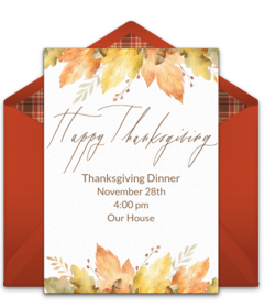 The decision is up to you: you have the option of going with a truly traditional menu for your celebration or sticking to modern classics - either one will be delicious! Still need recipes for your Thanksgiving dinner? Check out the full list of Thanksgiving ideas and be sure to send an online Thanksgiving dinner invitation to set the stage for your event. Personalize your favorite invite, send by text or email, and gather RSVPs in minutes.
