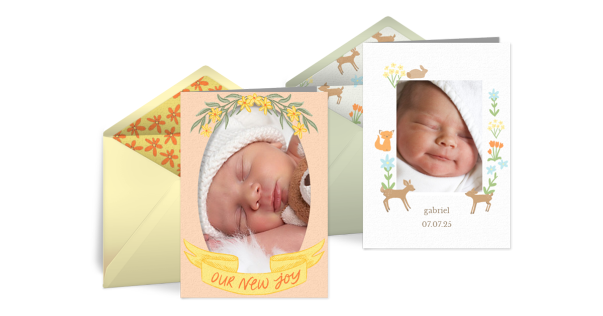 Punchbowl.com Baby Announcement Cards allow parents to share their baby’s arrival with friends and family once the baby is born.