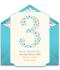 - Create your event on Punchbowl to view a variety of “kid friendly” free 3rd birthday party invitations to email to all of your guests. Include information such as the name of the event, name of the guest of honor, date, time, and location. Select the your favorite invitation design, based on the theme of the birthday party.