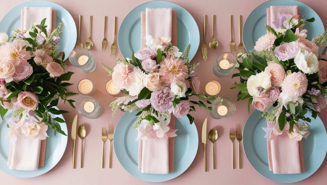 - Wrap parchment paper around garden pots and tie in place with gold ribbon. Wrap all cutlery in blue gingham napkins and tie with the same ribbon and diplay in the center of tables.