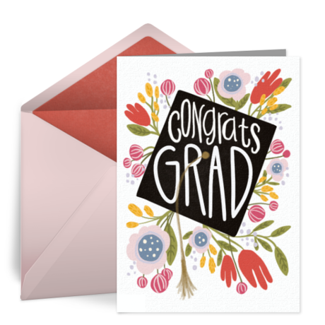 Know someone graduating this year? Punchbowl offers a variety of fully customizable, free graduation cards that are perfect for sending a personal congratulations message to graduates from high school, college, grad school, and beyond. Here are a few examples of graduation eCards: