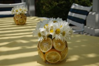 - Centerpieces: Create beautiful, bright lemons and limes centerpieces for the dinner party. To start, fill clear, square or round vases with lemons and limes or choose one or the other. If you want to get really creative, put a smaller vase inside the bigger vase and fill it with flowers trimmed so that the stems end at the top of the square vase. Then, slice your fruit in half and place the pieces between the outside of the square vase and the inner vase so that your guests only see lemons and limes in bases with flowers on top.