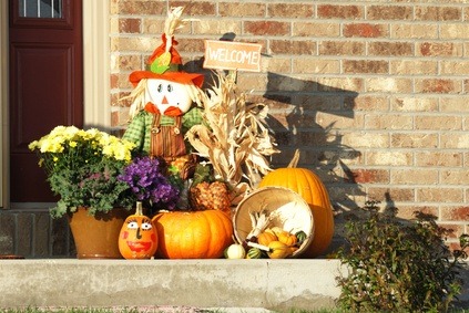 - Scarecrow: Another cute door decoration is a scarecrow. If you already have one, move it next to your door. Otherwise, make a scarecrow with some old clothes, a broom and some hay.
