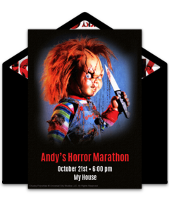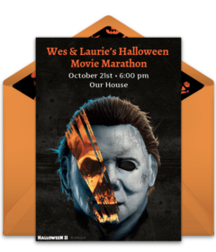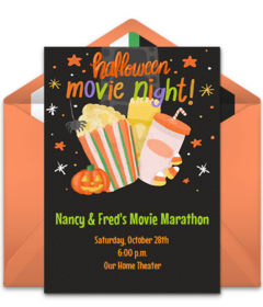 Once you’ve decided on the movies for the marathon, it’s time to send free online Halloween invitations to invite guests. You can choose between numerous festive and spooky Halloween designs, or even specific Halloween movie invitations. Customize your message and add a Zoom link or a video conferencing service of your choosing so you and your friends can all hang out at a distance and enjoy these spooky flicks together.