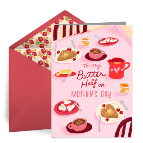 Make a splash with this Whaley Awesome Mother’s Day card or spread Mother's Day joy with this Butter Half Mother’s Day card.