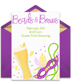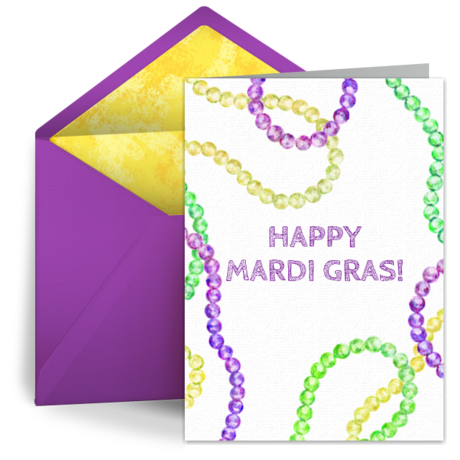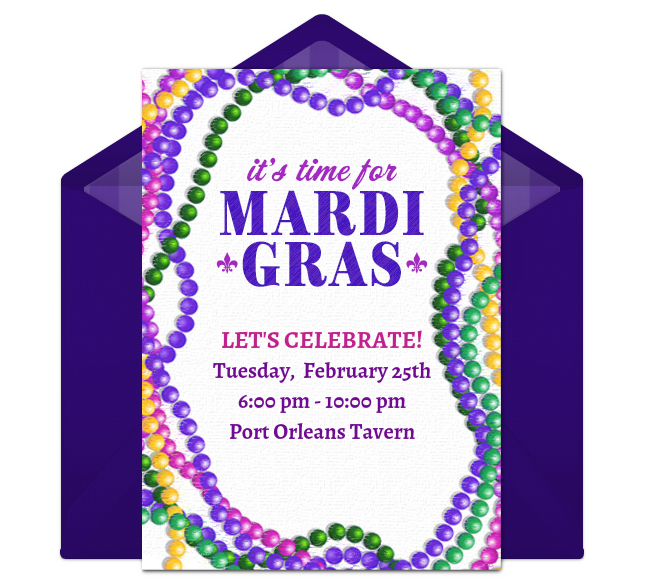 If you are participating in the Mardi Gras carnival this year, make sure you get plenty of colorful beads! Until then, check out our colorful Mardi Gras invitations to host your Mardi Gras party, or explore our delightful range of Mardi Gras cards to send Fat Tuesday wishes to friends!