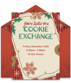 - Send out invitations: Find an appetizing cookie exchange invite from the collection of free invitations on Punchbowl to give your guests a taste of the festivities to come. Keep your guest list to a manageable size—large enough to enjoy an interesting variety of cookies, but not so large that you are overwhelmed.