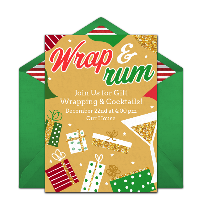 - Gift Wrap Gathering: Tired of the same old wrapping paper, gift bags and bows, or just dread wrapping altogether? Plan a gift-wrapping party with yummy cocktails. This is the perfect way to pool your wrapping resources and knock one more thing off your to-do list while hanging with friends. Let guests know to bring gift wrap and bags, tissue paper, tape, scissors, ribbons, bows, and gift tags – then get wrapping!