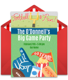 To start, browse digital Super Bowl party invitations and pick your favorite design. Add important event details then take advantage of the easy-to-use Potluck Feature to organize your potluck. Create a potluck list and specify how many items you need in each food category (drinks, sides, appetizers, etc.) so you don't end up with ten desserts and zero appetizers! You can also request that certain guests bring certain dishes — that way your neighbor will be sure to bring those famous jalapeño poppers that everyone loves.