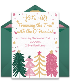 Pick a free Christmas invitation that will go with the theme of your event. Include the name of the party, host, date, time, place, RSVP info, and any other details such as a potluck sign up sheet. Once you customize your invitation, deliver by text or email instantly and manage RSVPs online.