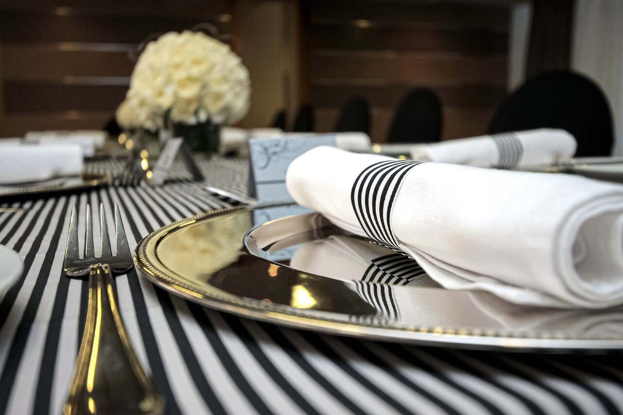 Purchase black and white tablecloths, napkins, and other tableware in solid colors or stripes, polka dots, and other fun patterns. If you plan to have table centerpieces, place white candles on mirrors and sprinkle black and white confetti around the mirror for an elegant effect. Another centerpiece option is to fill up square vases with white roses or lilies and put black stones in the bottom of the vase.