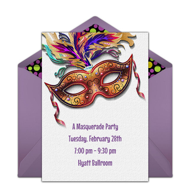 Send your guests online masquerade party invitations to inform them about the special occasion. Make sure your invitations are colorful and elegant to reflect the theme. A nice touch is to include a mask on the design. Use wording on the invitations such as “Masquerade Magic” or “Masked Ball.” Don’t forget to include other important details such as the time, place, and location.