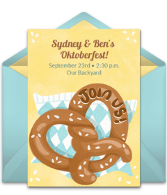Invite guests to your Oktoberfest celebration with Oktoberfest party invitations. Create your event on Punchbowl to access a beautiful collection of free Oktoberfest party invitations and select your favorite design. Include all the important party invitation information, use catchy wording, and take advantage of Punchbowl’s other party planning tools.