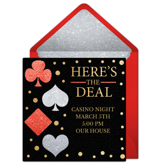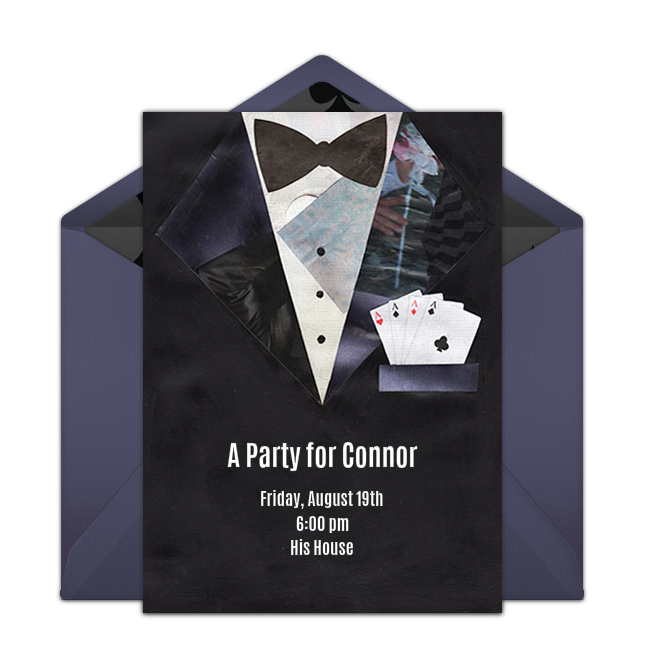 James Bond’s adventures through decades of film have taken place all over the globe and during each of the four seasons. This gives you almost endless inspiration for your James Bond, 007 Theme Party. Host a tropical Bond party based on Dr. No or Thunderball, or an Asian-inspired Bond party modeled after You Only Live Twice. Or check out the casino themed invitations below for your Mediterranean Casino-based party for Casino Royale.