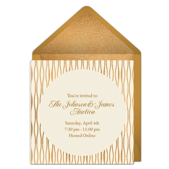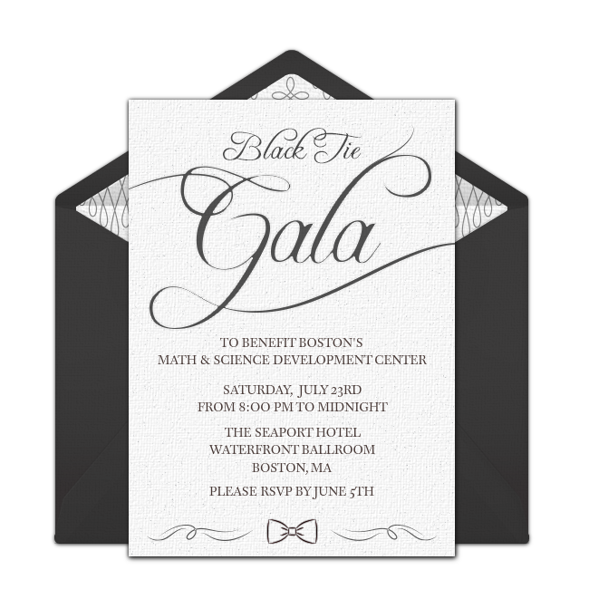 A great summer cocktail party idea is a Black Tie Bash. Typical “Black Tie” events can sometimes be stuffy affairs with more emphasis placed on decorum than on enjoyment. A younger, crazier descendant of the Black Tie event, the Black Tie Bash is a purely fun event, giving you an opportunity to drag that prom or wedding attire that you never thought you’d wear again out of the closet, get your updo done, and make a grand appearance. Pick an elegant, upscale invitation like the Gold Waves, Black Tie, or Marble Abstract designs below.