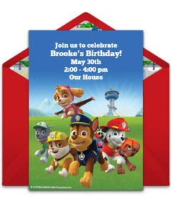 Celebrate your pooch-loving birthday boy or girl with a PAW Patrol birthday party! Punchbowl can help you plan a fun and adventure-filled party with exclusive online invitations featuring your favorite PAW Patrol characters, as well as inspiration for your party decorations, food, activities and more.