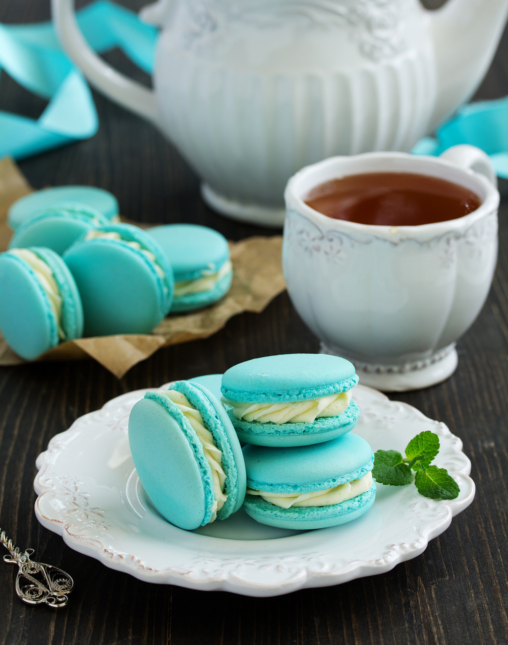 Belle's Tea Party: Host a tea party worthy of Chip and Mrs. Potts' admiration! In your invitation details, you can request that guests bring their favorite doll or stuffed animal to join the fun. Create mini sandwiches, plenty of tasty tea, and even tiny desserts that everyone will enjoy. Set out dainty trays of blue and yellow macarons for your guests to enjoy. You can also whip up a Beauty and the Beast inspired treat with pudding, whipped cream, and a little food coloring, and say, "Try the grey stuff, it's delicious!"