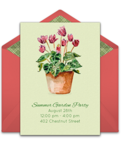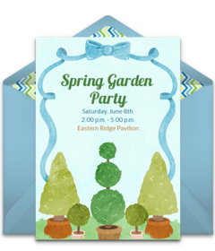 Plan a garden party in your backyard, a local park, or garden. To start, customize online garden party invitations and send from any digital device in minutes. Easily track and manage RSVPs right from your phone.