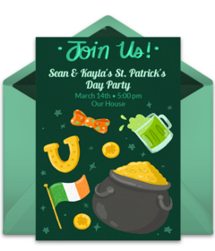 Hosting a St. Patrick's Day party? Be sure to send online St. Patrick's Day invitations by text or email to easily manage RSVPs and communicate with guests.