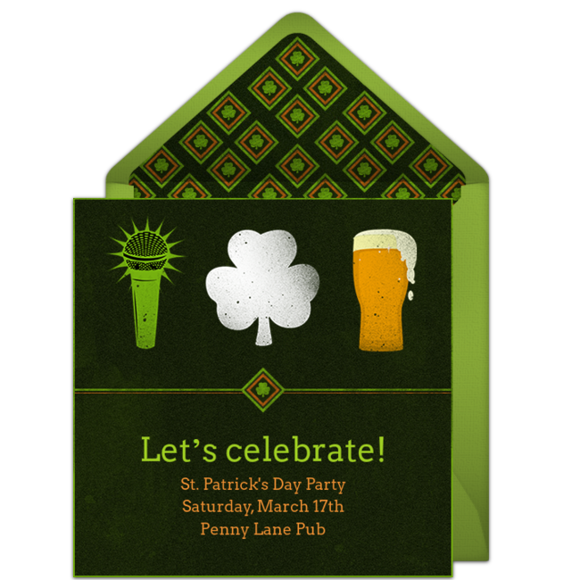 You can supplement this list with songs by some of the more popular bands from Ireland, like U2, The Cranberries, The Corrs, Snow Patrol, and The Script. Finally, don't forget to set the stage for your party with online St. Patrick's Day invitations. Find your favorite design, customize, and send it via email or text in minutes! st patty song.png468.97 KB