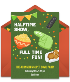 Set the stage for your celebration and share important event details with digital Super Bowl invitations. Customize your favorite design, send by text or email, and easily manage RSVPS online.