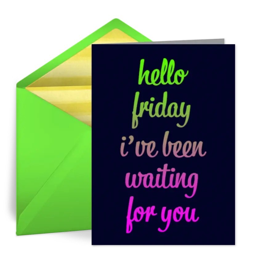 To celebrate this wonderful day, send an online Happy Friday card to someone who's had a long week. Personalize the message inside the card then deliver it by text or email instantly. The recipient will appreciate the thoughtful well wishes for a fabulous weekend.
