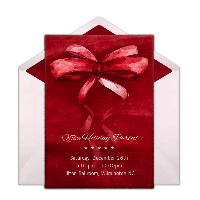 - Holiday Bow Invite: A festive red bow painted in watercolors makes this a beautiful invitation for your holiday office party.