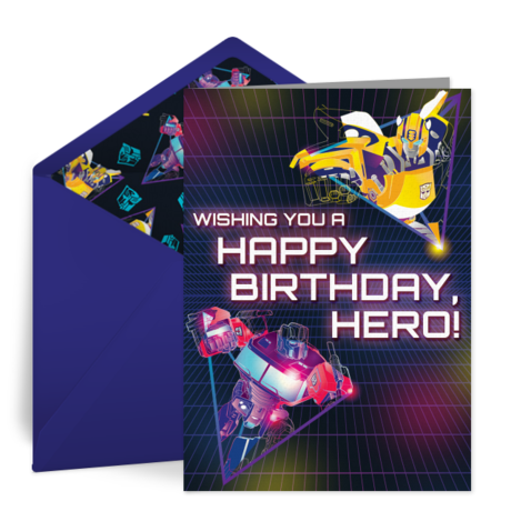 Transformers Birthday Card: Finally, on the honoree's actual birthday, be sure to send them a Transformers birthday card that can be personalized and sent by text or email in minutes!