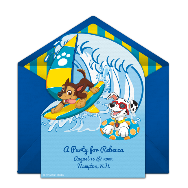 Is your birthday kid a dog lover? If yes, throw them a “Dog Days of Summer” party with these cute, online dog birthday party invitations. The term “Dog Days” refers to a period of time in July and August that is typically the hottest time of the year, so be sure to have plenty of cool drinks on hand like “Labrador Lemonade” and “Puppy Punch.” Decorate the space with black and white and a Dalmatian-spotted tablecloth that your kiddo can make themselves with black fabric paint on a white flat sheet. Set up a face painting station so guests can transform themselves into their favorite pooch and serve brownies cut with bone-shaped cookie cutters for a sweet treat!paw-patrol-invitations.png299.56 KB