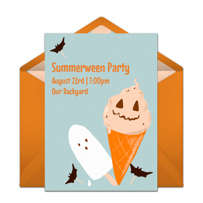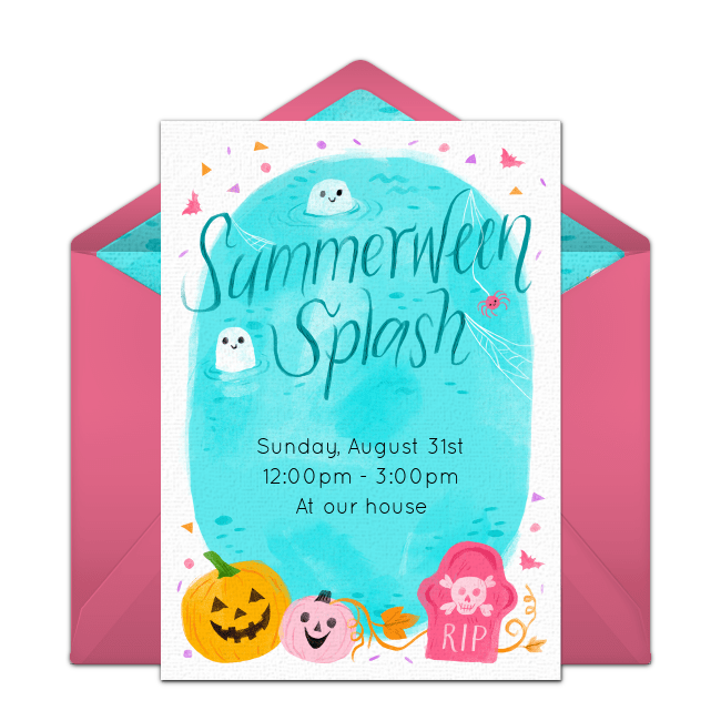 Ghosts, goblins, superheroes, and princesses don’t have to wait until October 31 to come out and play! To get started with a Halloween birthday party, send an online Halloween birthday invitation or these cute Summerween party invitations that you can customize and send via email or text. Let guests know they should wear a costume and bring a Trick-or-Treat bag. Once they arrive at the party, they can ring the doorbell in true Halloween style and fill their bags from candy bowls left strategically around the party area. For decorations, use any Halloween decorations you have at home and add orange, black, and white streamers throughout your party space.